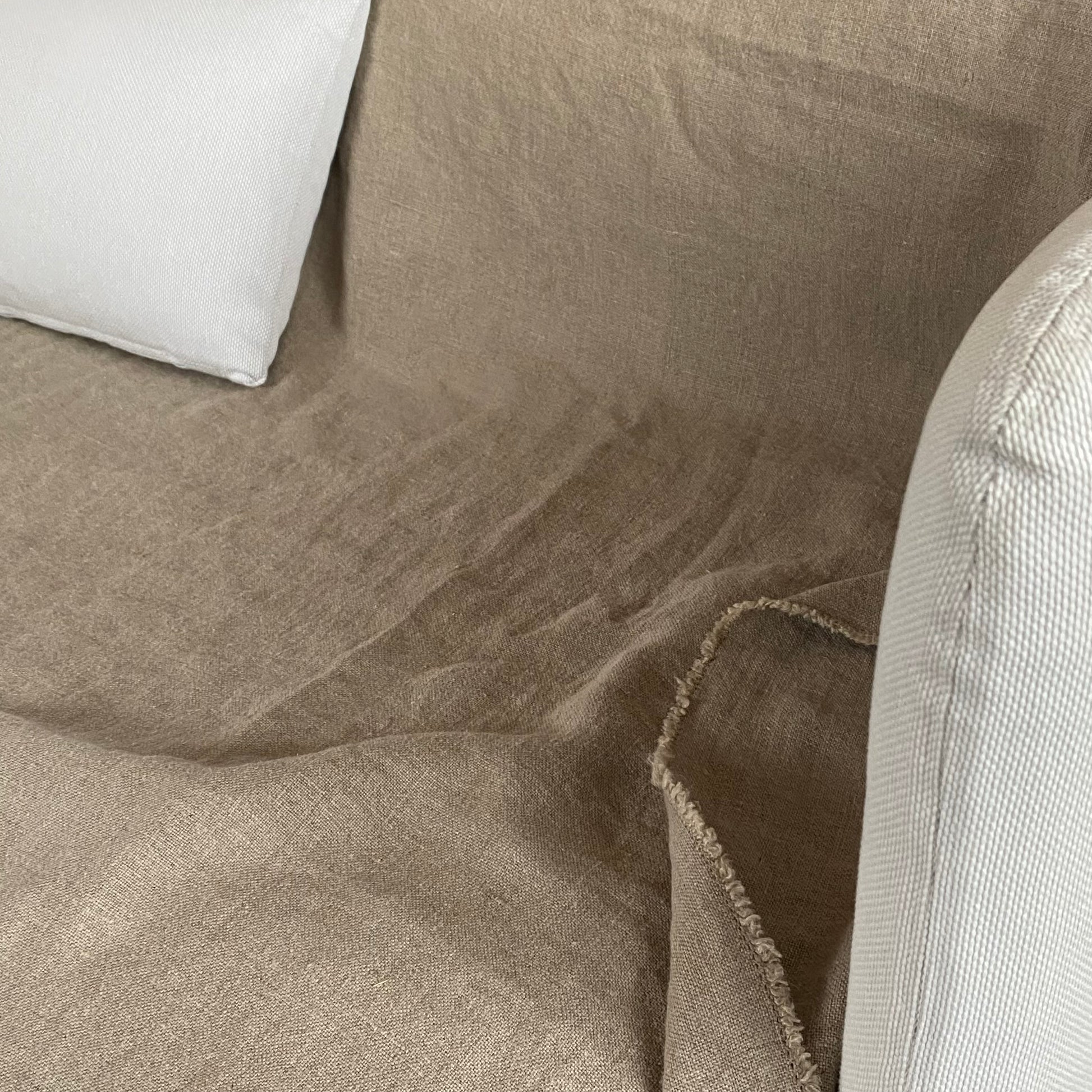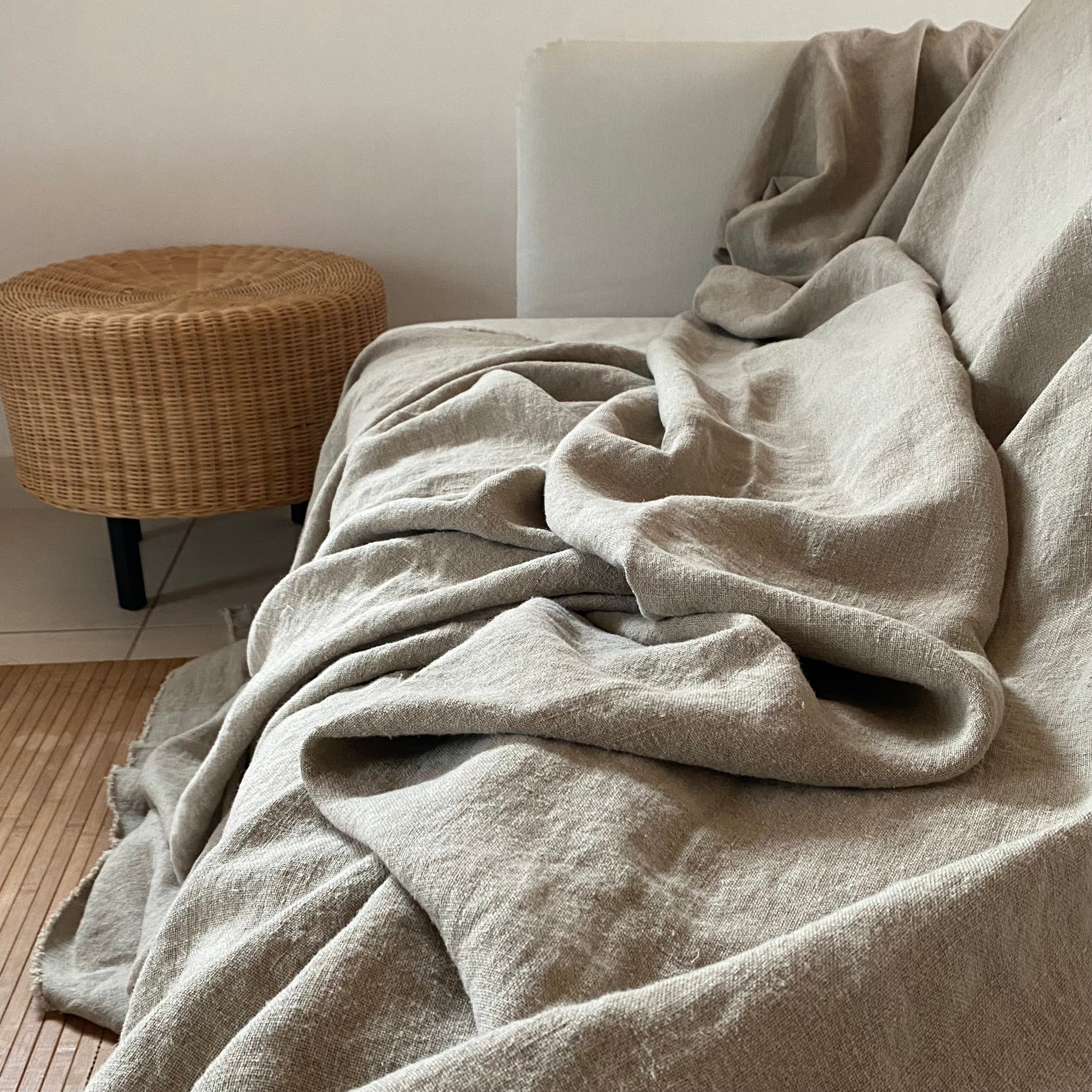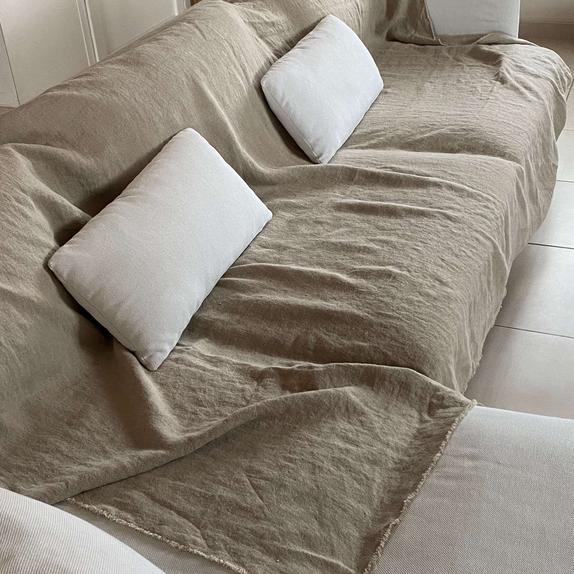 Ce couvre-lit est idéal pour toutes les saisons : sa composition en lin, connue pour sa respirabilité et ses propriétés thermorégulatrices, garantit une fraîcheur en été et une chaleur douce en hiver. Polyvalent, il peut également servir de plaid élégant sur un canapé, comme présenté sur la photo. Il crée une atmosphère accueillante et apaisante dans la pièce.