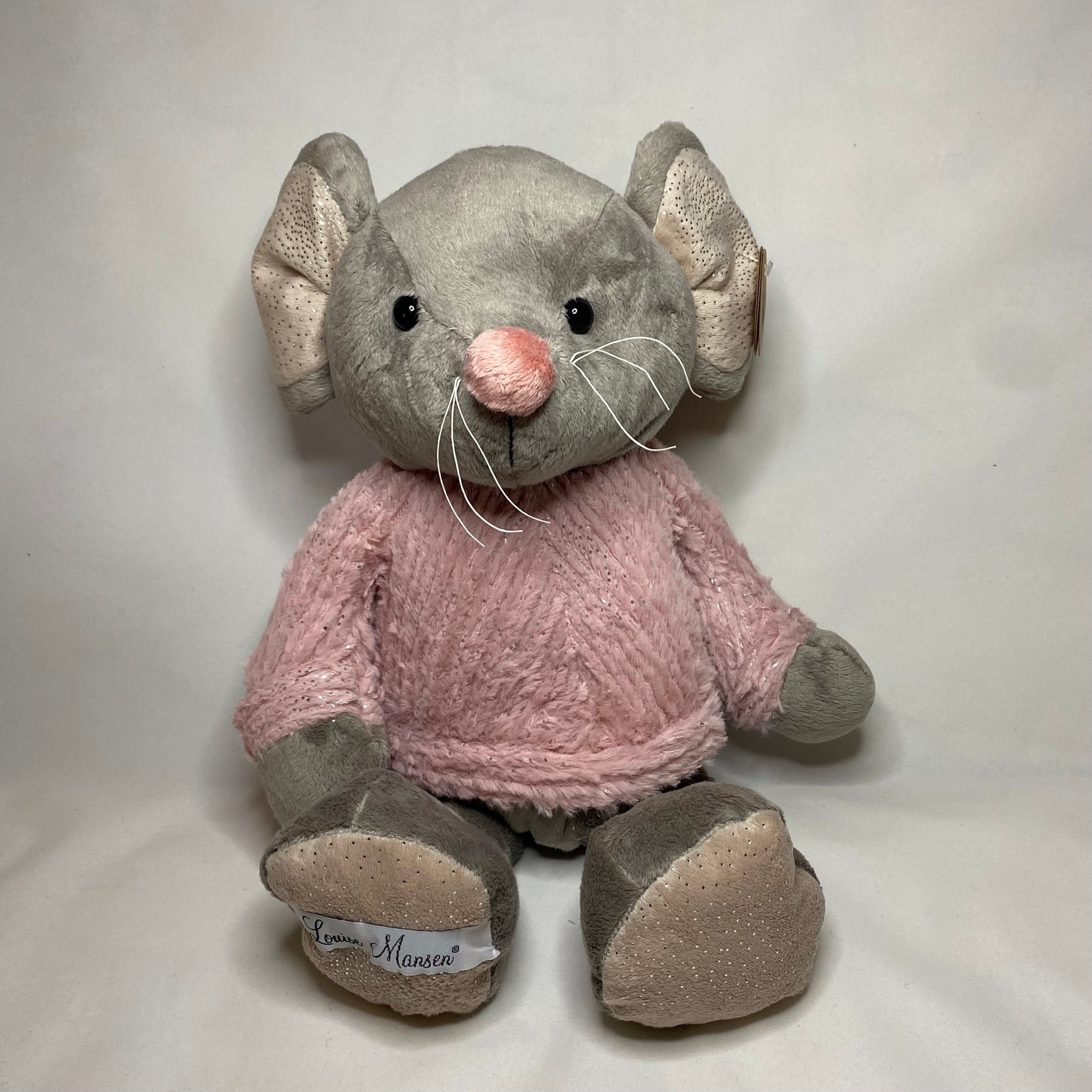 Voici Hannele, une petite souris grise en peluche de la marque Louise Mansen, toute douce et pleine de charme.