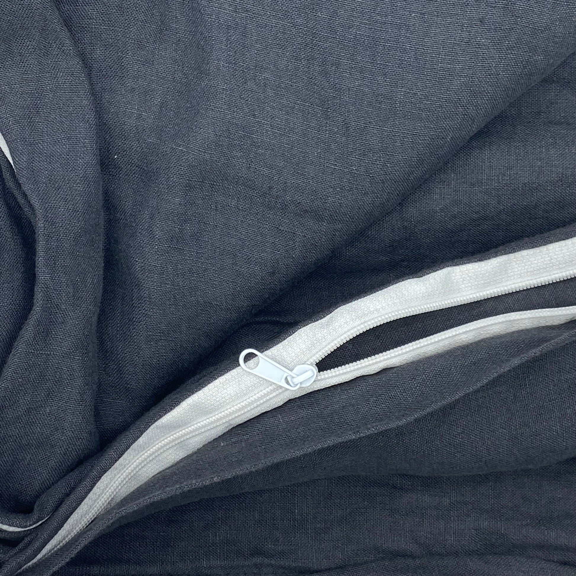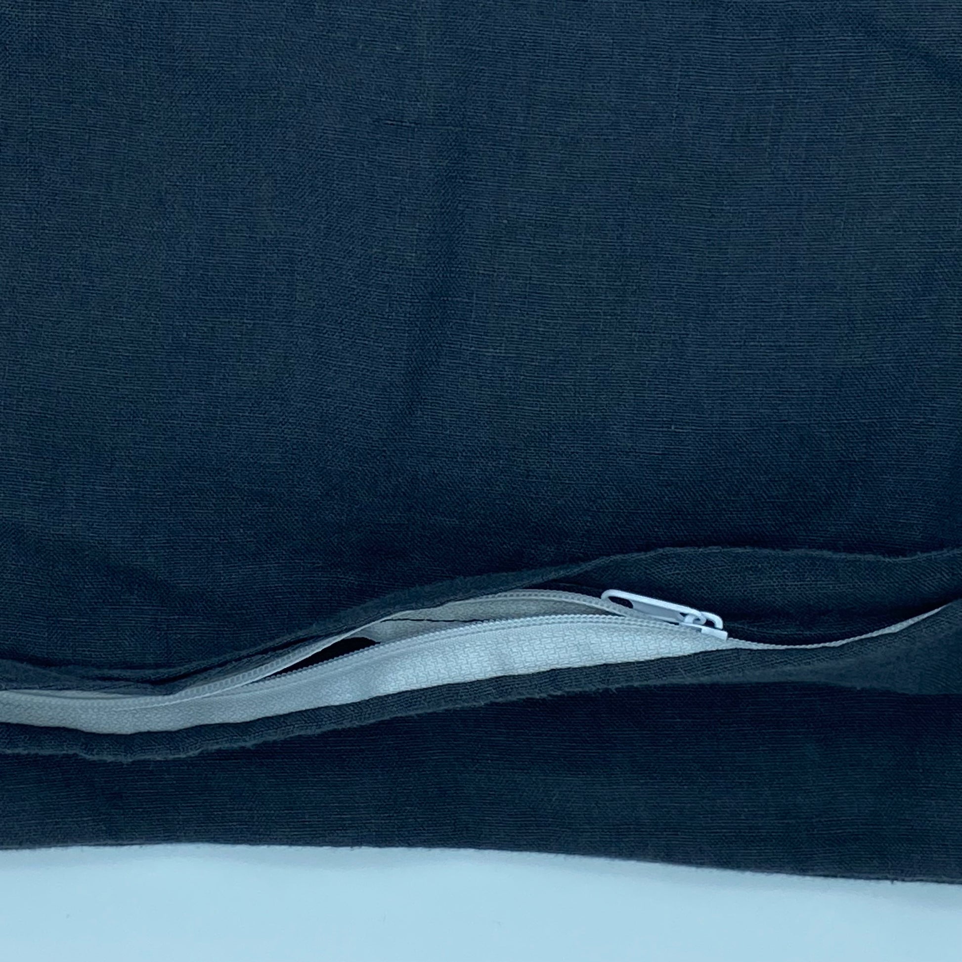 Les taies d’oreiller assorties, également en lin noir uni, reprennent la même élégance sobre, créant une harmonie parfaite pour votre lit. Dotées d’une fermeture zippée blanche cachée, elles allient confort et facilité d’utilisation tout en apportant un style moderne et soigné.