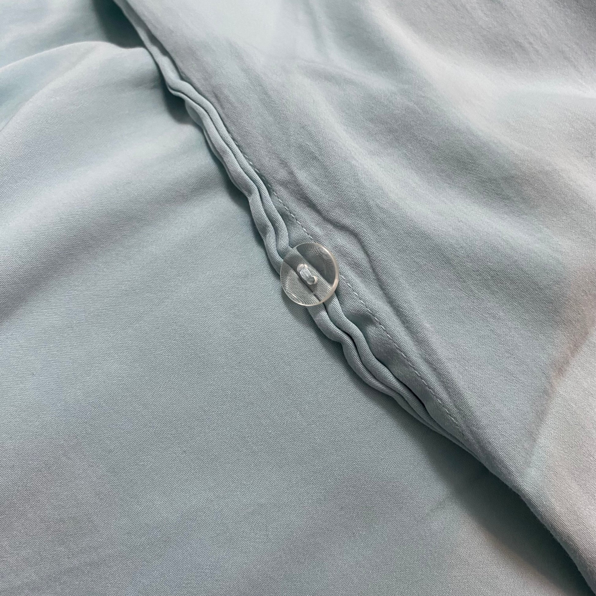 Son tissage serré lui confère un aspect légèrement brillant et un touché soyeux incomparable. Douce, fluide et respirante, cette housse offre un confort haut de gamme nuit après nuit. Sa fermeture à boutons allie esthétique et praticité.