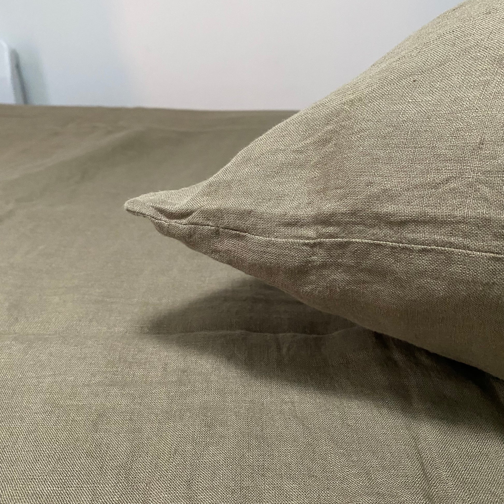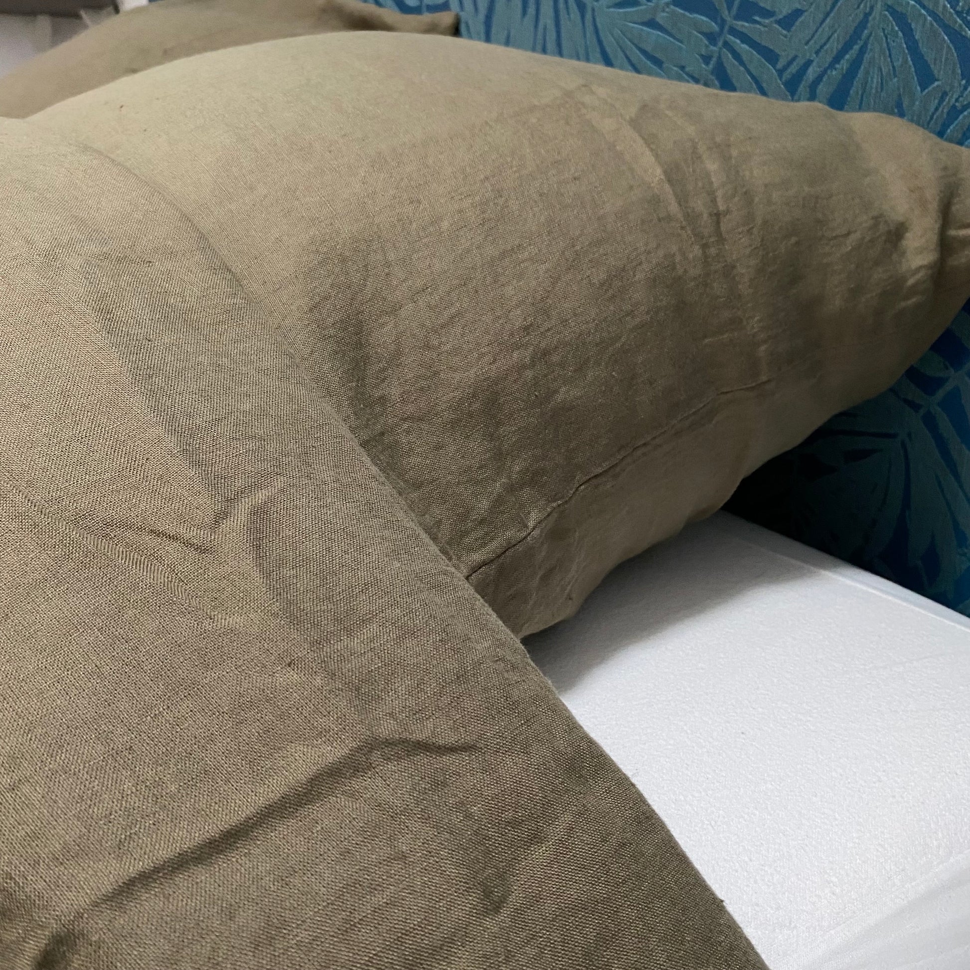 Housse de couette 240x260 + Taies carrés - Vert Kaki - Lin lavé