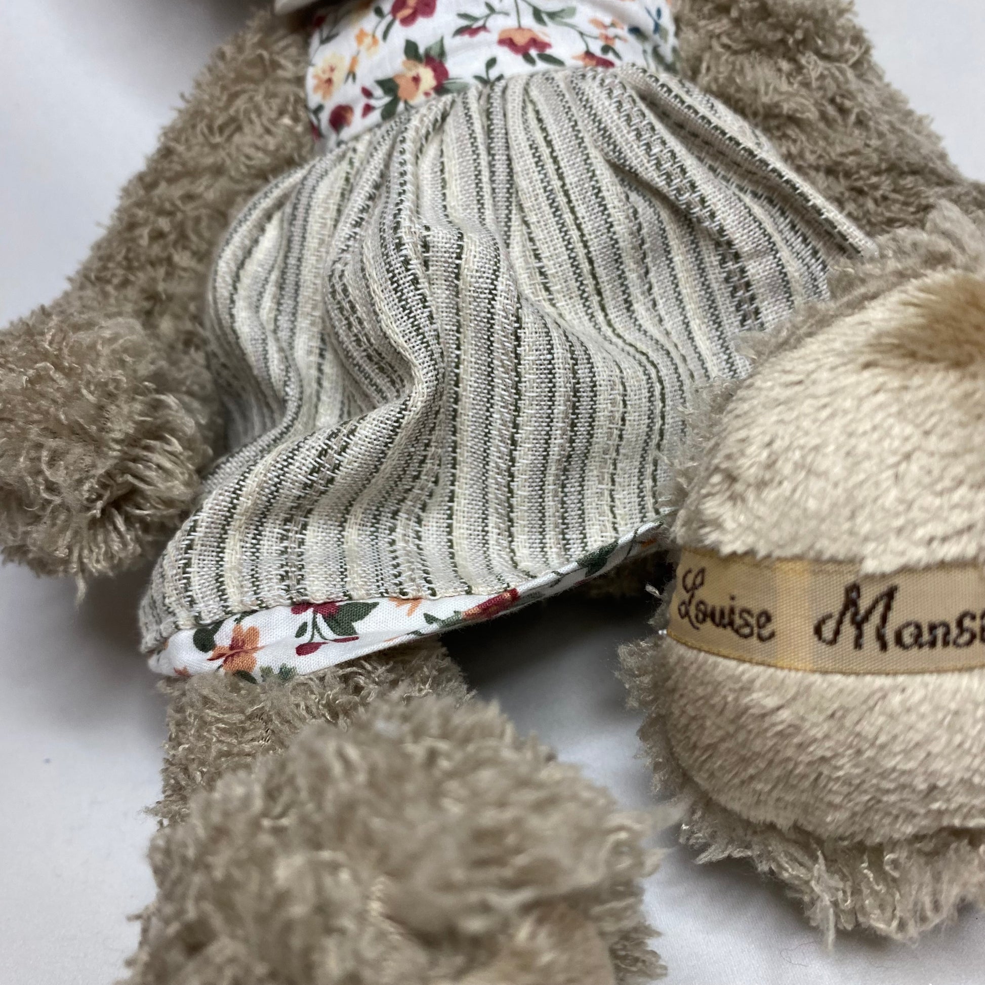 Voici Jemma, une oursonne en peluche de la marque Louise Mansen, pleine de grâce et de charme.