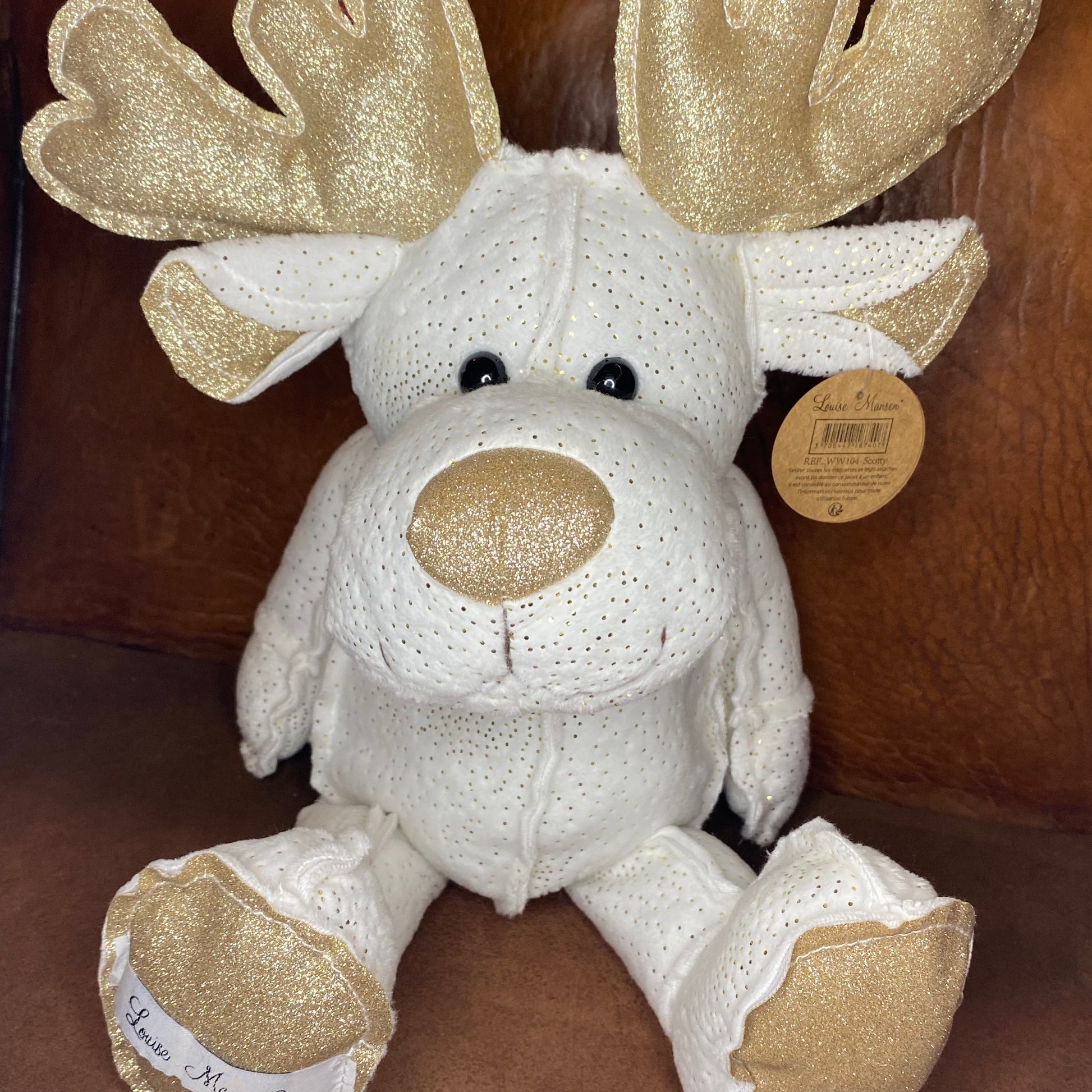 Voici Scotty, un caribou en peluche de la marque Louise Mansen, qui allie douceur et élégance.