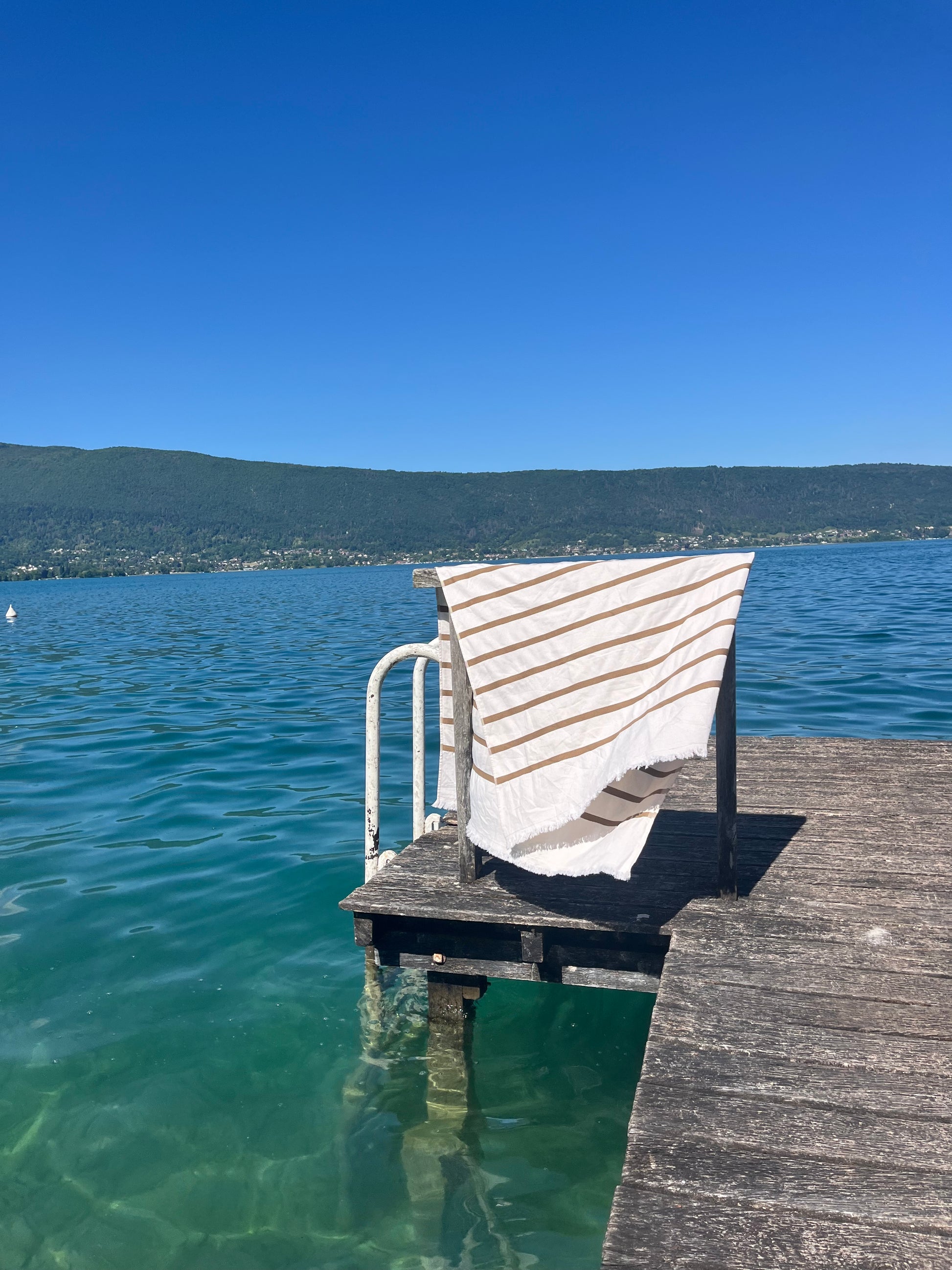 La serviette dispose d'une face en éponge douce, idéale pour absorber l'eau et vous sécher rapidement après la baignade.