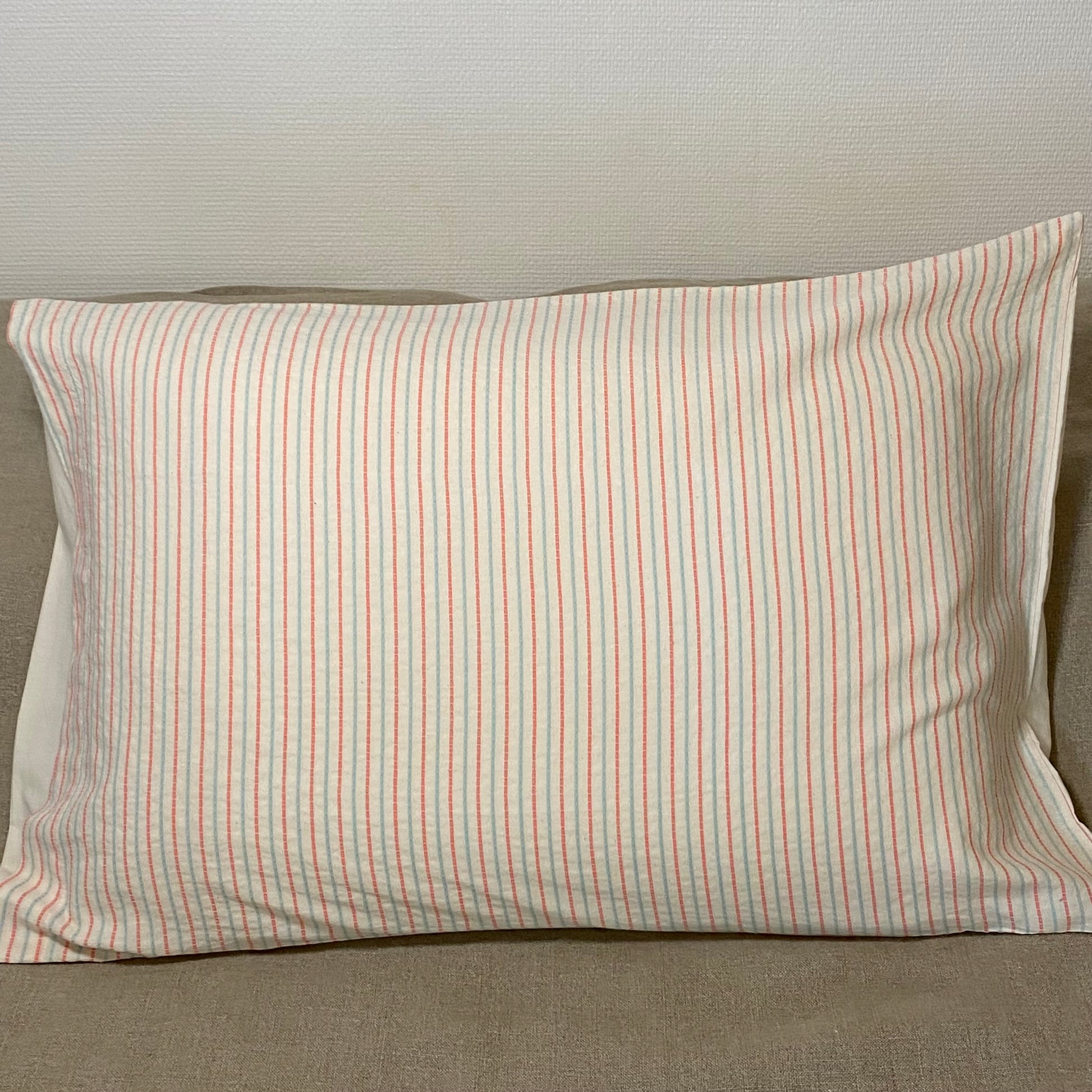 Paire de taies d’oreillers lin et coton - Rayures roses et bleues